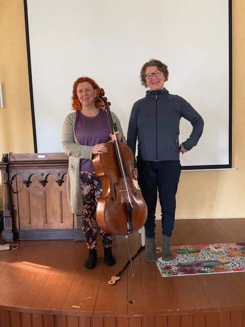 Heini Mielonen on sekä jooganopettaja , sellisti että musiikkipedagogi (MuM) ja hän on kehittänyt oman hathajoogaan pohjautuvan ja elävää sellomusiikkia sisältävän sellojoogaharjoituksen. Meillä oli ilo kokea tämä joogaharjoitus.