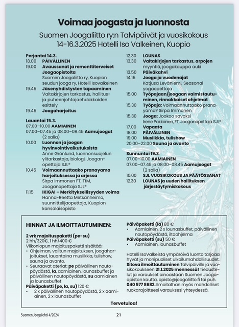 Suomen Joogaliiton Talvipäivät Kuopiossa